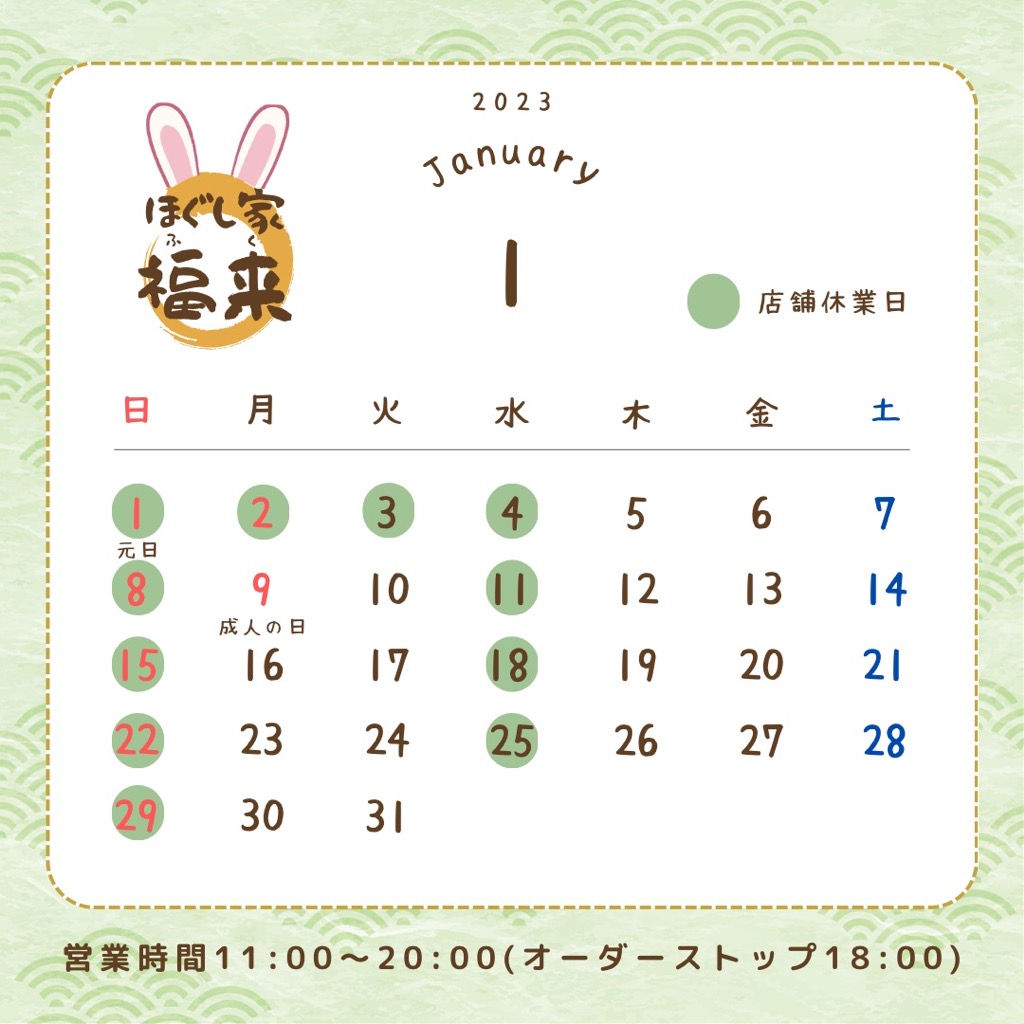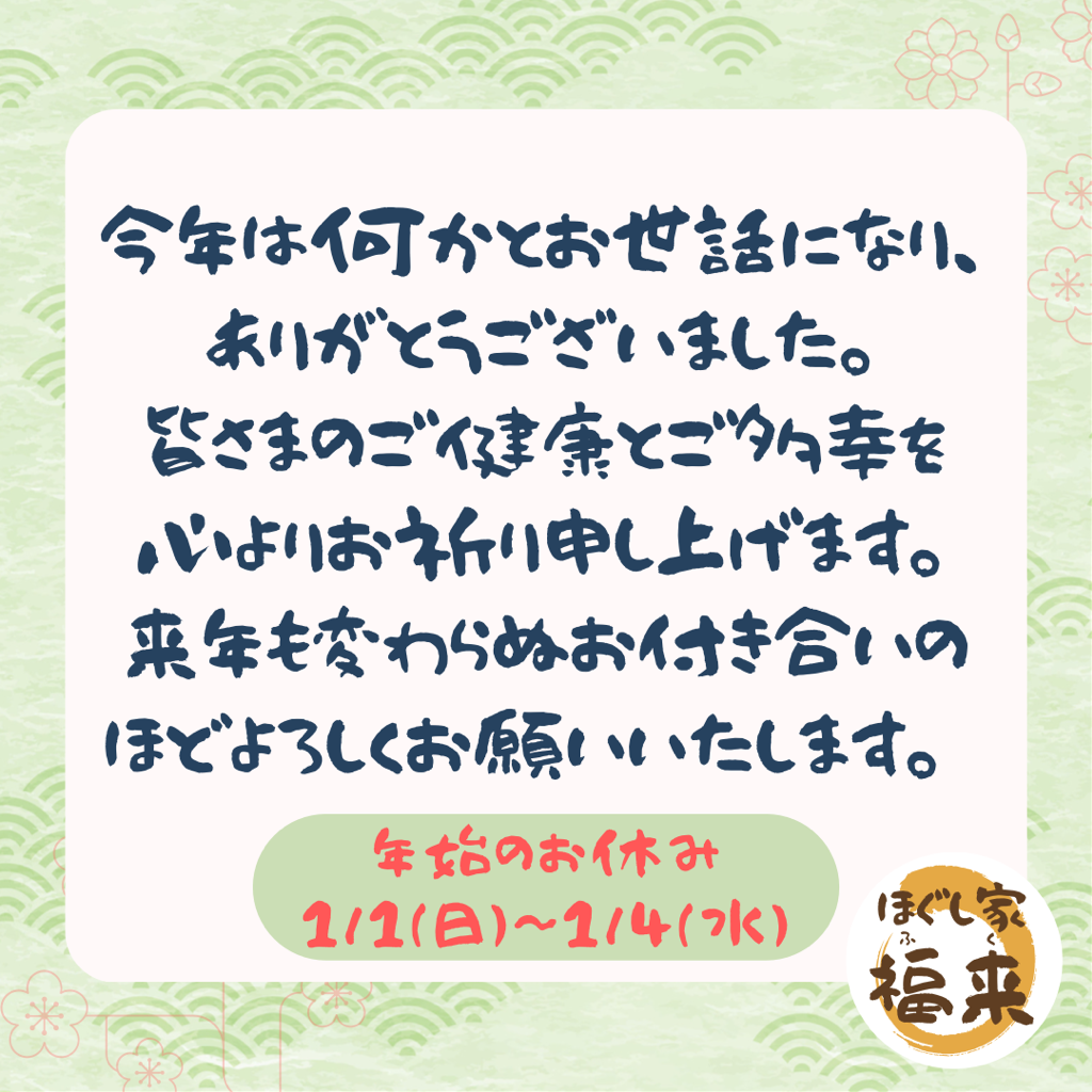 来年も『ほぐし家 福来』を宜しくお願いいたします🐰