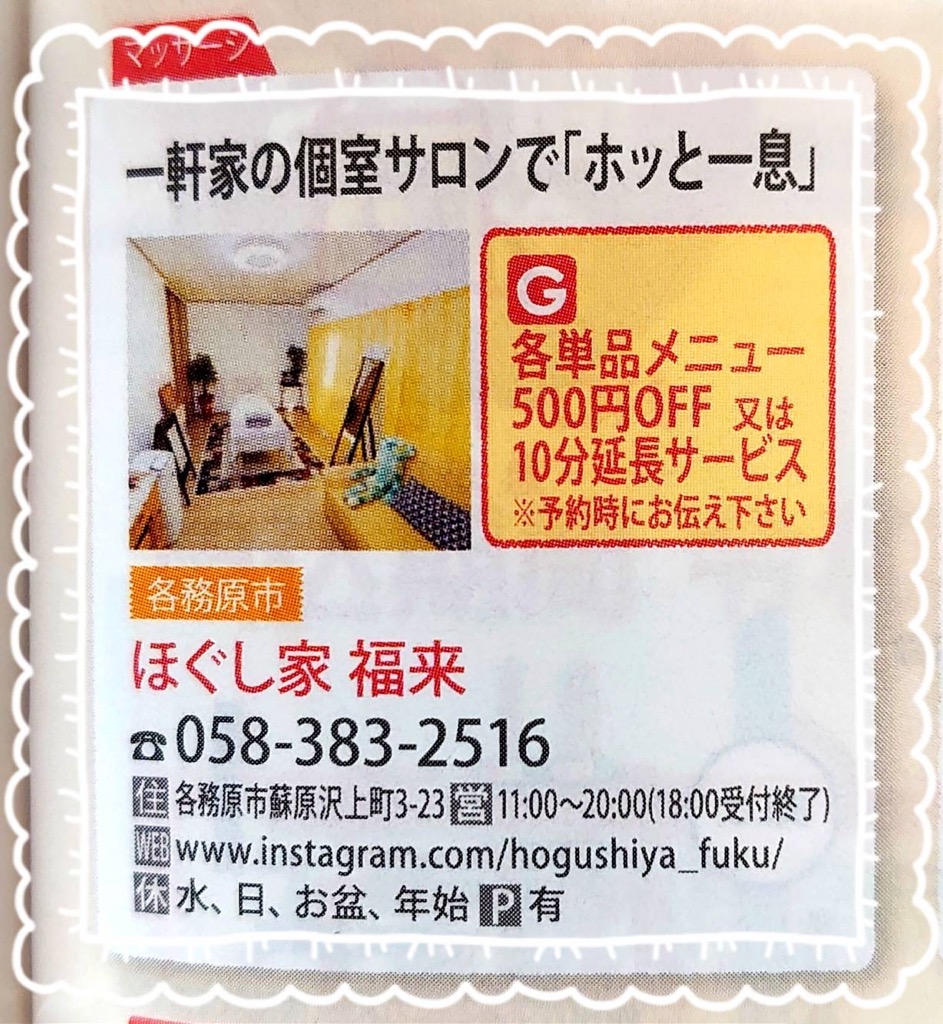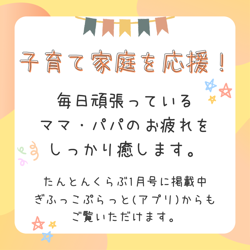 ぎふっこカードをお持ちの子育て世代の方々のお疲れを癒します😊