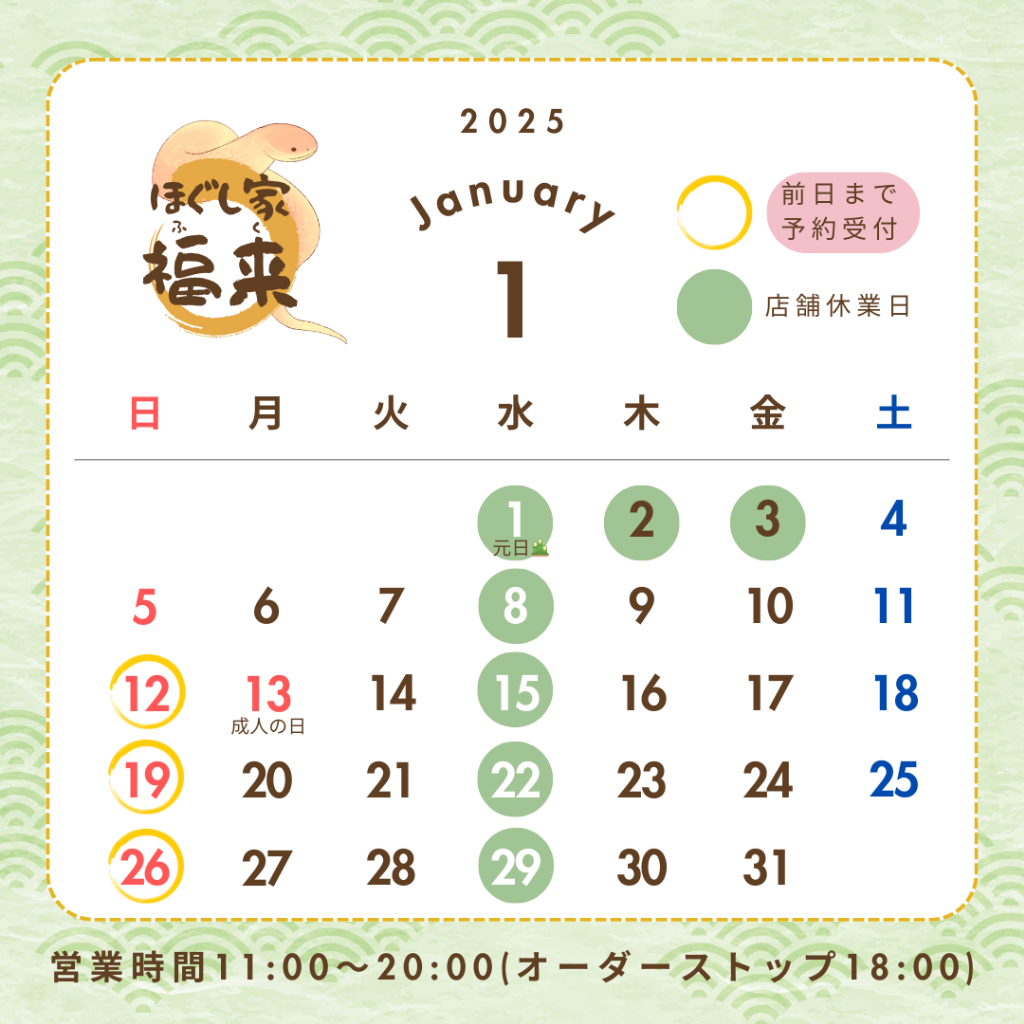 『ほぐし家 福来』を通じてできた縁を大切に、2025年も皆様に喜んでいただけるよう日々精進してまいります🐍
