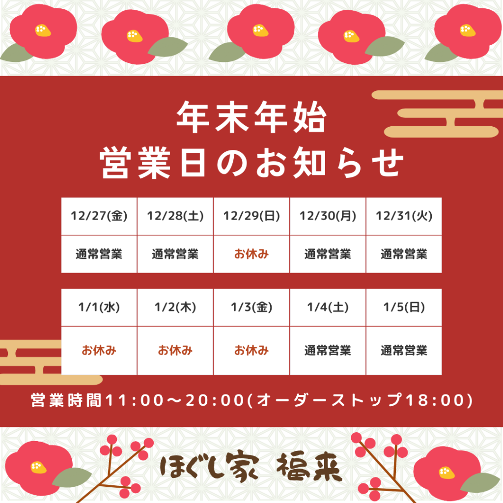 12月も《ほぐし家 福来》をよろしくお願いいたします。