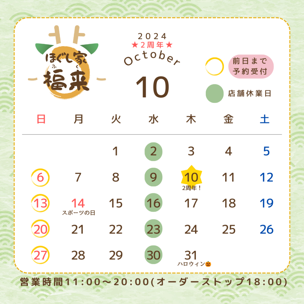 10月の営業日&㊗️2周年‼