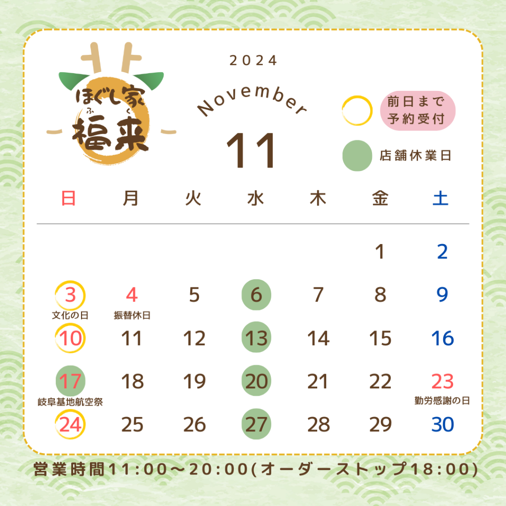 11月の営業カレンダーが出来ました❗️