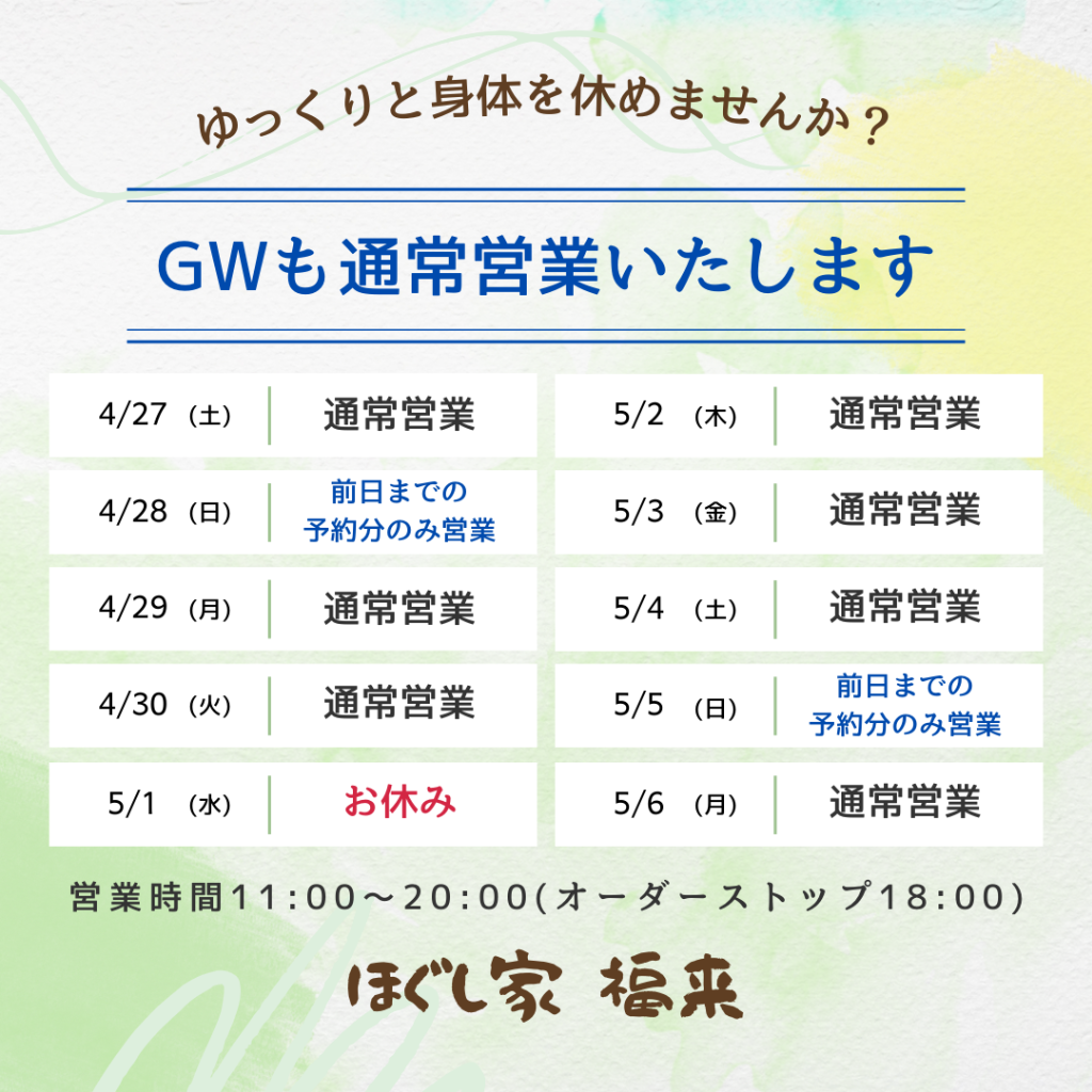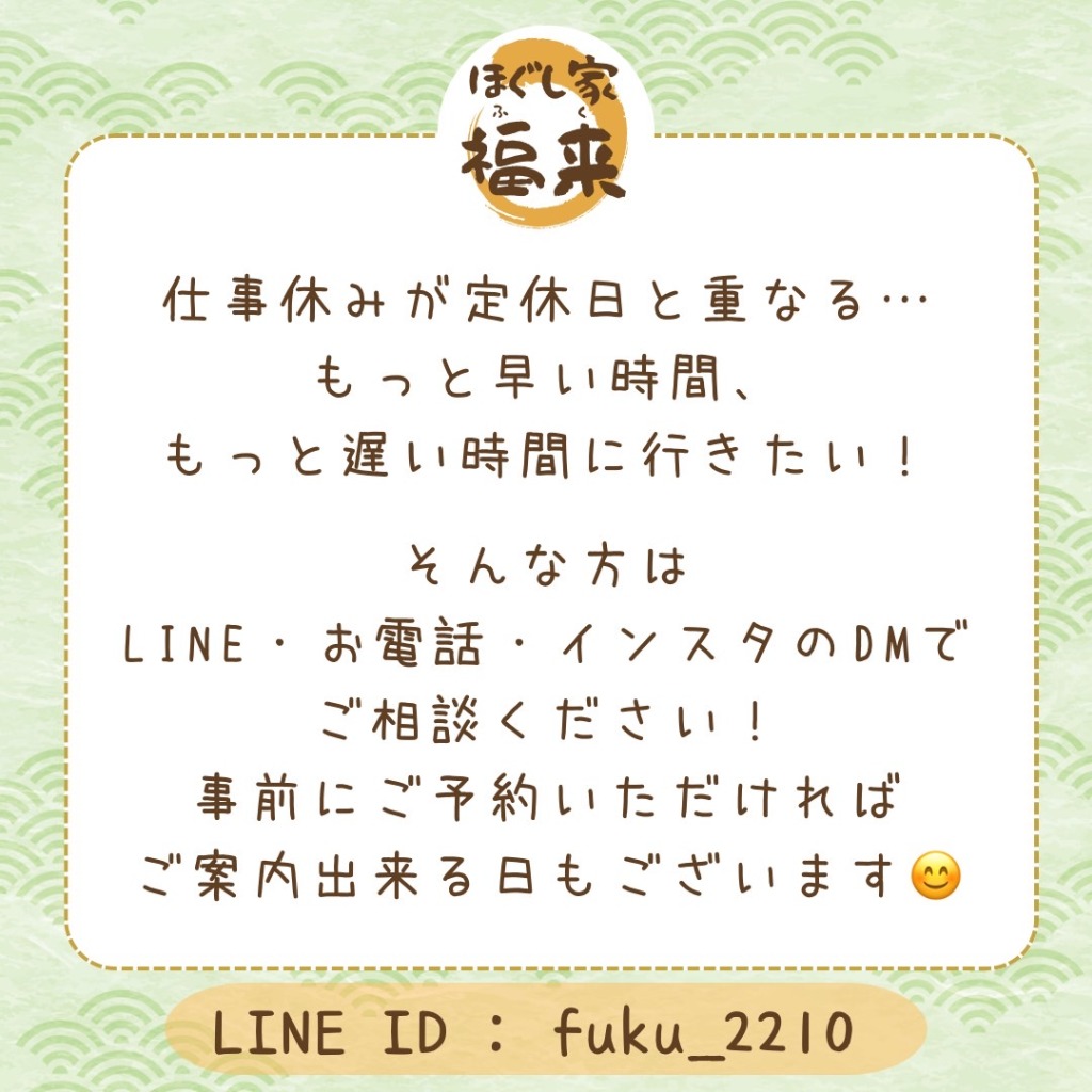 今後とも《ほぐし家 福来》をよろしくお願いいたします。